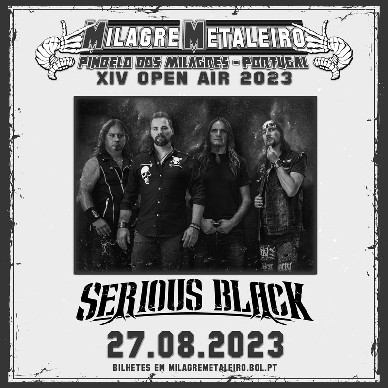 El power metal de Serious Black estará presente en la próxima edición del festival portugués Milagre Metaleiro. Una nueva banda que se suma a un cartel que ya cuenta con bandas como Moonspell, Dark Tranquillity, Eclipse, Orden Ogan, Boisson Divine, entre otros. El festival tendrá lugar los días 25, 26 y 27 de agosto, en el pueblo de Pindelo dos Milagres y las entradas están disponibles en el enlace.