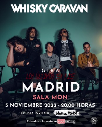 Por fin llega el inicio de la gira de los madrileños Whisky Caravan. Después de maravillarnos con su último disco "Imaginaciones", nos presentarán su disco este sábado en la sala Mon de Madrid en la gira "Los Últimos en Pie" a partir de las 20:00. Les acompañarán los gallegos Mar de Fondo, un grupo de rock en castellano que vienen a presentar "38 pasos", que cuenta con la colaboración de Kutxi Romero, Fernando Madina y El Drogas.