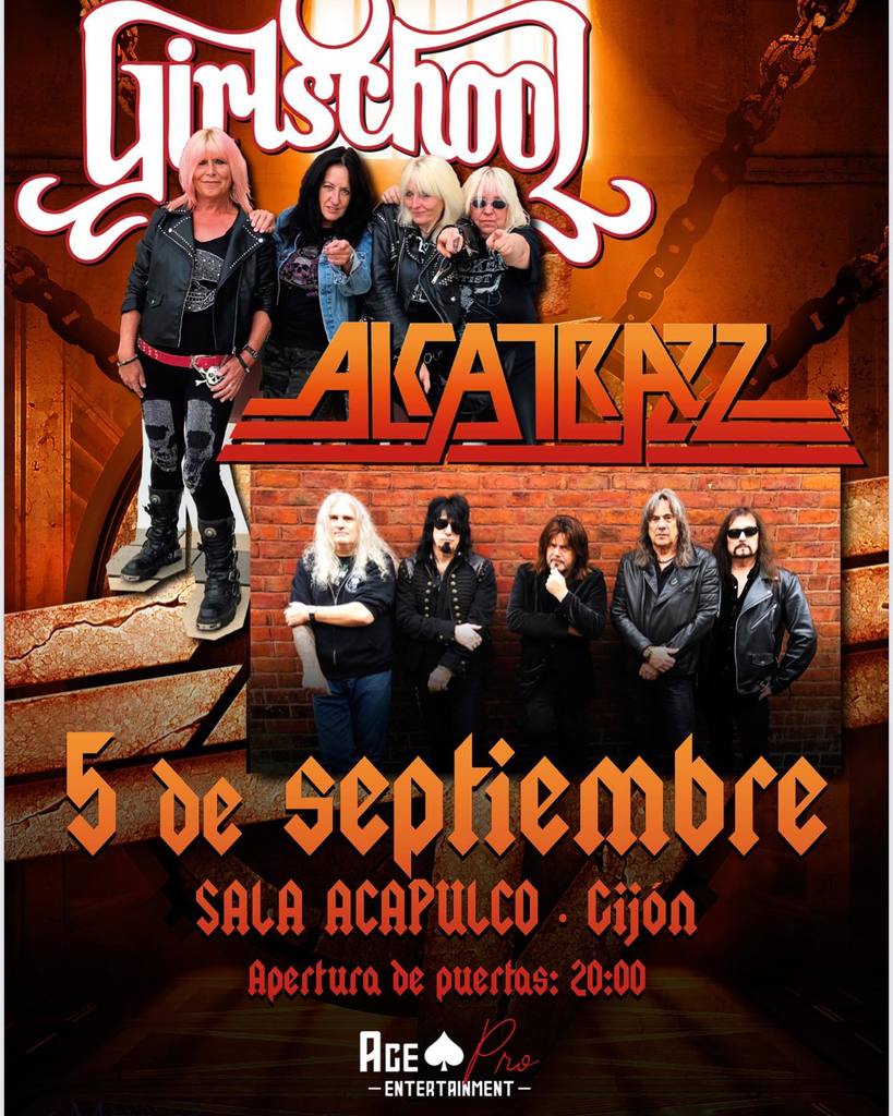 Os recordamos que el cinco de septiembre llegará a Gijón, de la mano de Ace Pro, la gira europea de dos formaciones clásicas del heavy metal, las incombustibles Girlschool y los no menos míticos Alcatrazz con Doogie White a la voz. La cita será en la Sala Acapulco de Gijón a partir de las 20:00h. Las entradas están disponibles en el siguiente enlace desde 27€ + gastos y 32€ en taquilla.