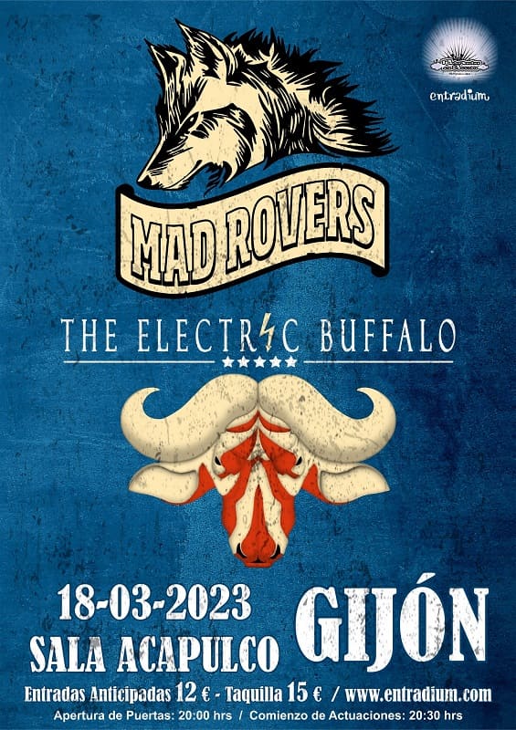 Este sábado 18 de marzo tenéis una cita con el rock en la sala Acapulco de Gijón. A partir de las 20:00h podréis disfrutar de dos grupazos asturianos como son Mad Rovers y The Electric Buffalo.