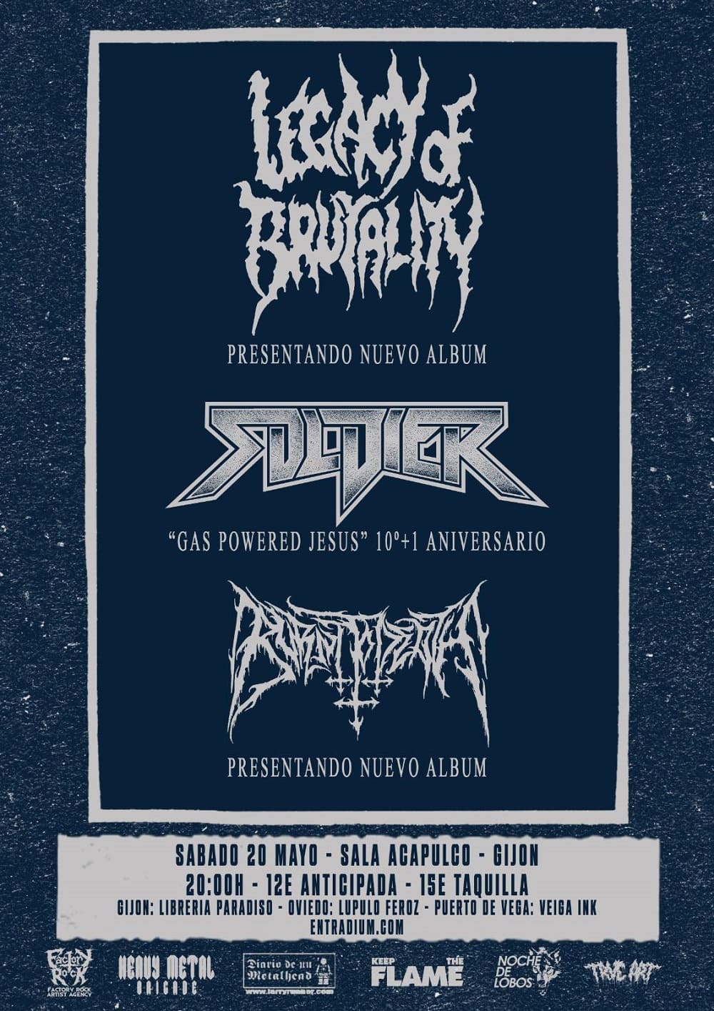 Yo creo que el cartel habla por sí solo y va a ser uno de los bolos del año en Asturies. Legacy of Brutality y nosotros llevamos años sin tocar, así que la vuelta ya de por sí es especial, pero además lo hacemos tanto celebrando el 10º aniversario de nuestro primer disco, como la publicación de uno nuevo por parte de Legacy. Además, estaremos acompañados por Burnt to Death, formación nueva de metal extremo que suenan brutal. Si esto no hace levantar el culo del sofá a la peña, ya no sé qué más se puede hacer. Igual anunciarlo por Tik-tok, jajaja.