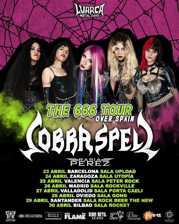 Este martes 23 de abril arranca en Barcelona la gira española de Cobra Spell. La banda neerlandesa liderada por Sonia Anubis nos presentará en un total de ocho fechas su disco debut "666" y tratará de demostrar por qué es una de las sensaciones del panorama europeo.