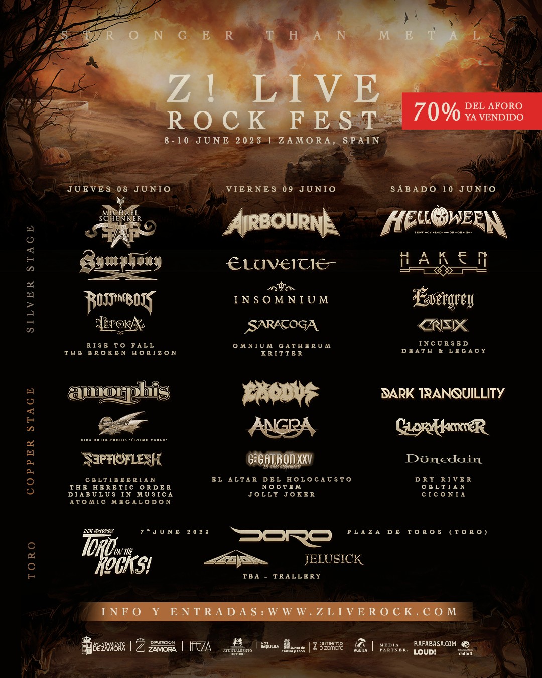 A 3 meses de su celebración os recordamos todos los detalles del Z! Live Rock Fest. Esta increíble reunión de bandas se celebrará en Zamora entre los días 8 y 10 de junio de 2023, en las instalaciones de IFEZA, y en Toro el día 7 en su histórica plaza de toros.