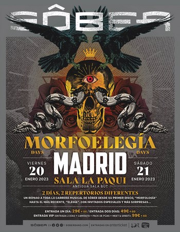 Esta semana tenemos una doble cita con Sôber en la llamada "Morfoloegía". Serán este viernes y sábado en la sala La Paqui donde repasarán su carrera musical desde "Morfología" hasta "Elegía" con dos repertorios totalmente diferentes y elegidos por los fans. Además prometen sorpresas e invitados.