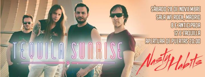 Tequila Sunrise, la banda de hard rock compuesta por integrantes de grupos ya consagrados en el panorama nacional como Ankhara o Steel Horse, presentará el próximo mes de noviembre su EP debut "Nasty Habits". El día elegido es el 28 de noviembre en la céntrica sala We Rock.