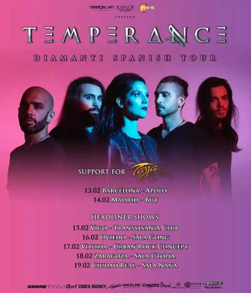 La banda italiana de power metal melódico Temperance estará el próximo mes de febrero presentando su último disco "Diamanti", en dos fechas junto a Tarja y cinco citas más como cabezas de cartel.