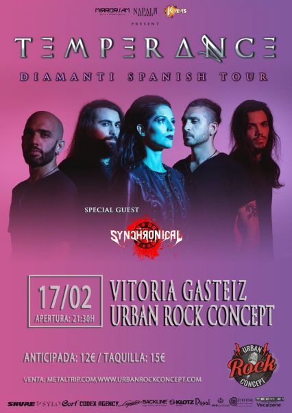 La banda italiana de power metal melódico Temperance estará en la Sala Urban Rock Concept de Vitoria el próximo viernes diecisiete de febrero presentando su último trabajo "Diamanti", como banda invitada estarán los madrileños Synchronical.