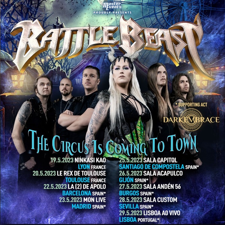 Tenemos por fin cerca la llegada de la gira española de los finlandeses Battle Beast, en esta gira están presentando su último trabajo de estudio "Circus of Doom", que pasará por diversas ciudades durante el próximo mes de mayo.