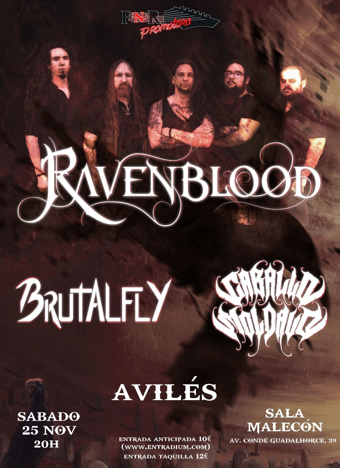 El sábado veinticinco de noviembre los catalanes Ravenblood llegarán a Asturias para seguir presentando su último trabajo "Resurgent" y algunos de los temas que formarán parte de su nuevo disco. Además estarán acompañados por las bandas asturianas Brutalfly y Caballo Moldavo. La cita será en la Sala Paseo Malecón de Avilés a partir de las 20:00h.
