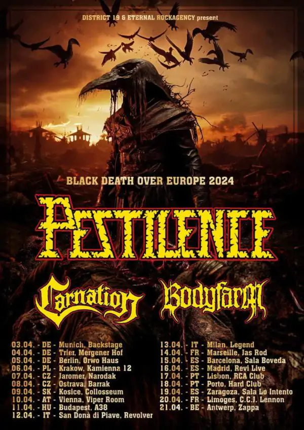 El próximo mes de abril Pestilence traerá a España su "Black Death Over Europe Tour 2024", en una oportunidad especial para recordar sus grandes clásicos incluidos en discos como "Consuming Impulse" o "Testimony Of The Ancients".