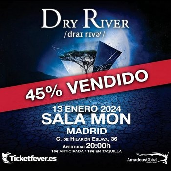 Os recordamos que el próximo 13 de enero, los valencianos Dry River volverán a Madrid. Será en la sala Mon, prometiéndonos invitados de lujo. La banda demuestra su estado de forma con una contundente gira plagada de conciertos para presentar su cuarto disco "Cuarto Creciente". Las entradas están a la venta al precio de 15€ (+ gastos) de manera anticipada. Si quieres ver a una de las bandas de rock más divertidas del momento, date prisa, porque ya han venido un 45% del aforo.