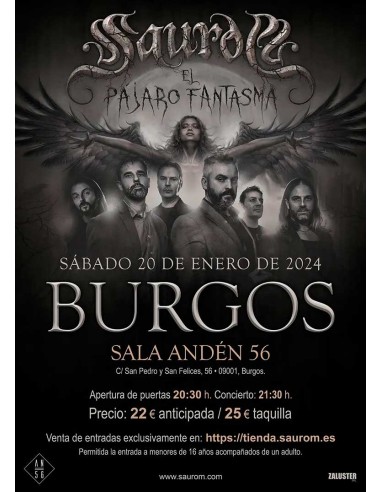 La banda Saurom regresa a Burgos, esta vez presentando "El Pájaro Fantasma", la fecha escogida será el sábado 20 de enero de 2024 en la sala Andén 56 de la ciudad.
