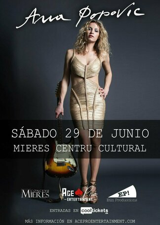 La cantante y guitarrista Ana Popovic estará en el Centru Cultural de Mieres del Camín el próximo sábado veintinueve de junio de la mano de Ace Pro Entertainment. Una excelente oportunidad de volver a disfrutar en Asturias del virtuosismo de la serbia que presentará su último trabajo "Power".