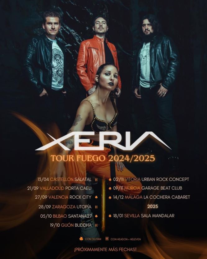 Los vallisoletanos Xeria han confirmado sus próximas fechas, en las que estarán acompañando a grupos como Celtian, Headon, Rainover o Heleven. Las fechas son las siguientes: