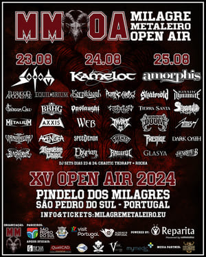 El festival portugués Milagre Metaleiro ha cerrado el cartel de su próxima edición que se celebrará del veintitrés al veinticinco de agosto en Pindelo Dos Milagres (Portugal). Un total de treinta y tres bandas de diferentes estilos encabezadas por Sodom, Kamelot y Amorphis desfilarán por Pindelo durante los tres jornadas.
