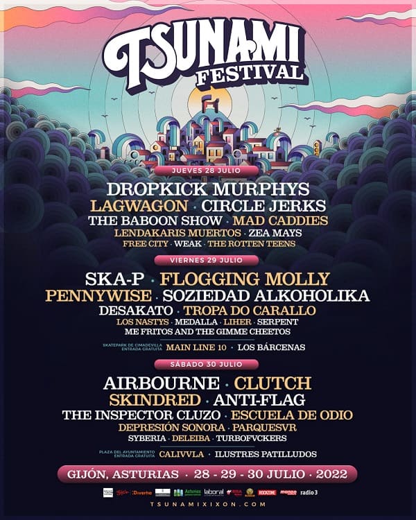El Escenario Vibra Mahou y el Escenario Cristina Zapico serán los encargados de acoger a gran parte de las mayores bandas de la historia del punk rock americano y del rock nacional en un 2022 en el que Tsunami Xixón se confirma como un festival referencia dentro del panorama de festivales a nivel nacional.