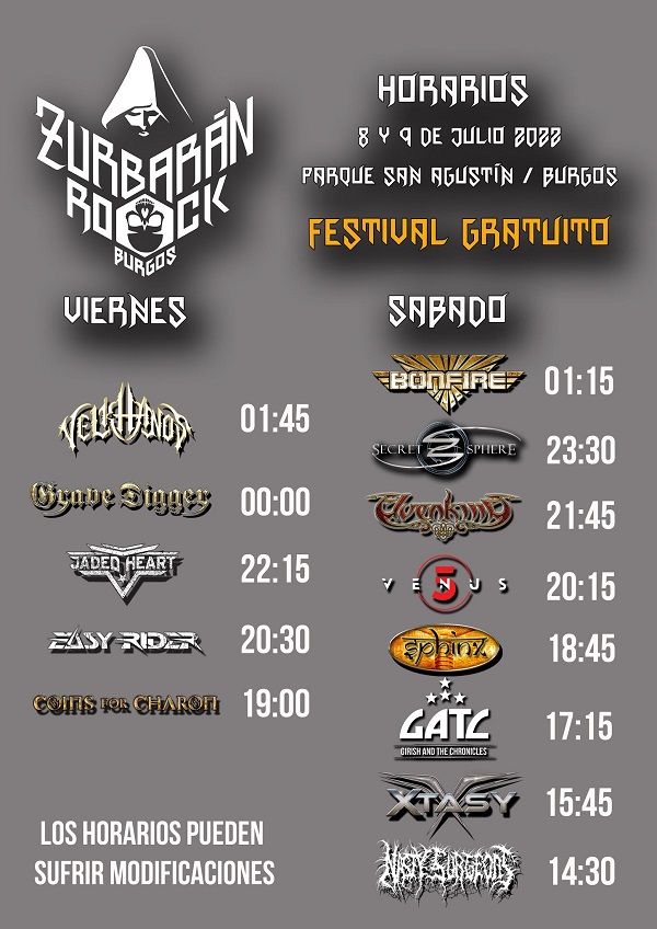 Los próximos días 8 y 9 de julio tendrá lugar la quinta edición del festival Zurbarán Rock, en Burgos. Concretamente, los conciertos se llevarán a cabo en el Parque San Agustín y se trata de un festival gratuito.