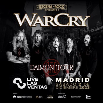 Una de las bandas de metal más importantes en lengua española WarCry anuncia fecha en Madrid para el próximo mes de diciembre. Los asturianos estarán tocando en Live Las Ventas para presentar su último trabajo "Daimon" del que ya hicimos review. La fecha elegida es el 2 de diciembre y las entradas están a la venta al precio de 31,50.
